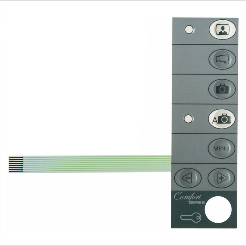 O diodo emissor de luz soldou na camada flexível do circuito de FPC para fazer no teclado numérico da membrana. 25 Everlight que 0805 luzes do diodo emissor de luz são montadas no teclado numérico, abóbadas do metal adicionaram ao teclado numérico da membrana para fornecer a camada superior do circuito. As janelas do diodo emissor de luz devem ser gravadas. Todos estes detalhes estão fazendo o estábulo da construção. Usar o ANIMAL DE ESTIMAÇÃO do resíduo metálico F200 faz a folha de prova olha graciosa. O teclado numérico do diodo emissor de luz é amplamente utilizado como o teclado numérico de controle industrial, devido aos bons botões táteis, funções poderosas. O teclado numérico pode ser personalizado baseado no projeto do cliente tal como os ícones do botão, as cores etc. Os caráteres principais são fiação impressa, baixa resistência e função bem. O artigo HW-91206003 com função forte pode soldar com diodo emissor de luz colorido, adotando a estrutura impermeável do círculo e o 3M9495LE. Assim os teclados numéricos são apropriados para o ambiente alto da umidade do ar.